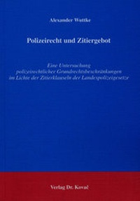 Die Arbeit untersucht polizeirechtliche Grundrechtsbeschränkungen unter dem Aspekt der verfassungsrechtlichen Begrenzung dieser Eingriffe. Eine dieser Grenzen stellt das grundgesetzliche Zitiergebot (Art.19 I, S.2 GG) dar. Hiernach muss der Gesetzgeber, wenn er in ein Freiheitsgrundrecht eingreift, das dem Zitiergebot unterfällt, dieses innerhalb des einschränkenden Gesetzes benennen. Zunächst wird der Anwendungsbereich des Zitiergebotes umrissen, um von diesem Ausgangspunkt die verschiedenen, sich in diesem Zusammenhang stellenden Probleme lösen zu können. Der Aufbau der Arbeit orientiert sich an § 4 des baden- württembergischen Polizeigesetzes, der die eingeschränkten Grundrechte zitiert. Es werden, nachdem dargestellt wurde, welche polizeilichen Maßnahmen in das jeweilige Grundrecht eingreifen, einige Probleme herausgegriffen und detailliert behandelt. Ausführlich besprochen wird der finale Rettungsschuss mit allen hierbei auftretenden verfassungsrechtlichen Fragen. Im Rahmen des Grundrechts auf Freizügigkeit stellen sich ebenfalls interessante Probleme. Fraglich ist zunächst, ob der Landesgesetzgeber in diesem Bereich überhaupt die Kompetenz hat, Eingriffe zu normieren. Sodann werden auch hier einige Einzelmaßnahmen, wie der Verbringungsgewahrsam und das Aufenthaltsverbot, angesprochen. Hochaktuell ist in diesem Bereich die Frage von Gewalt im sozialen Nahraum und die staatlichen, insbe sondere polizeirechtlichen Möglichkeiten hiergegen einzuschreiten. Diskutiert werden hier so genannte Wohnungsverweisungen. Mit deren polizei- und verfassungsrechtlichen Zulässigkeit setzt sich der Autor eingehend auseinander. Schwierige Fragen ergeben sich auch im Bereich von Grundrechten, die nicht in der Zitier-klausel aufgeführt sind. Im Besonderen zu erwähnen sind hier die Versammlungsfreiheit und das Fernmeldegeheimnis. Bei Art.8 GG wird die seit langem umstrittene Problematik der Einschränkung nicht-öffentlicher Versammlungen in geschlossenen Räumen ausführlich erörtert. Aber auch zahlreiche weitere Gesichtspunkte, von denen nur die umstrittene Zulässigkeit so genannter Minusmaßnahmen genannt werden soll, werden in diesem Kapitel behandelt. Hinsichtlich des Fernmeldegeheimnisses wird die ebenfalls sehr aktuelle Frage untersucht, ob Daten, die im Wege strafprozessualer Telefonüberwachungen gewonnen wurden, im Rahmen der Gefahrenabwehr verwendet werden dürfen. Im Anschluss erfolgt ein Vergleich aller Zitierklauseln der Landespolizeigesetze der 16 Bundesländer. Daran anschließend stellt der Verfasser eine Zitierklausel vor, wie sie auf der Grundlage seiner Untersuchungen len müsste. In diesem Vorschlag und der gelieferten kurzen Begründung fließen in einer Art Zusammenfassung die wesentlichen Thesen der Arbeit abrundend zusammen.