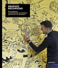 Mit Graphic Recording: Eine Anleitung zum Illustrieren von Meetings, Konferenzen und Workshops erscheint erstmals ein Handbuch, das die Techniken des Graphic Recording vermittelt und ihren effektiven Einsatz in Präsentationen und Meetings erläutert. Neben Mitherausgeberin und Fachfrau Anna Lena Schiller, die in diesem Buch ihre Expertise teilt, gewähren auch andere Graphic Recorder Einblick in ihre Werkzeugkisten und Arbeitsweisen: Jongens van de Tekeningen verfolgt die Grundidee, das Graphic Recording einfach und konkret sein sollte. Deutlich wird dies in seiner farbreduzierten Visualisierung der Force11-Konferenz auf leuchtend blauem Papier. Eine über neun Meter lange visuelle Dokumentation von Bigger Picture verdeutlich den Gesprächsverlauf während der Re:New-Konferenz und hebt die inhaltlichen Verknüpfungen hevor. Joel Cooper nutzt Auszüge aus dem Twitterfeed seines Klienten, um zusammen mit Präsentationskommentaren eine Vielzahl von zusammenhängenden Themen unterzubringen. Damit ist auch gezeigt, wie Graphic Recording auf mehr als das vor Ort gehörte zurückgreifen kann.