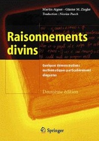 Théorie des nombres.- Six preuves de l'infinité de l'ensemble des nombres premiers.- Le postulat de Bertrand.- Les coefficients binomiaux ne sont (presque) jamais des puissances.- Représentation des nombres comme somme de deux carrés.- Tout corps fini est commutatif.- Quelques nombres irrationnels.- Trois méthodes pour calculer ? 2/6.- Géométrie.- Le troisième problème de Hilbert: la décomposition des polyèdres.- Droites du plan et décompositions de graphes.- Le problème des pentes.- Trois applications de la formule d'Euler.- Le théorème de rigidité de Cauchy.- Simplexes contigus.- Tout grand ensemble de points détermine un angle obtus.- La conjecture de Borsuk.- Analyse.- Ensembles, fonctions et hypothèse du continu.- À la gloire des inégalités.- Un théorème de Pólya sur les polynômes.- Sur un lemme de Littlewood et Offord.- La fonction cotangente et l'astuce de Herglotz.- Le problème de l'aiguille de Buffon.- Combinatoire.- Le principe des tiroirs et le double décompte.- Trois théorèmes célèbres sur les ensembles finis.- Mélanger un jeu de cartes.- Chemins dans les treillis et déterminants.- La formule de Cayley pour le nombre d'arbres.- Comment compléter un carré latin.- Le problème de Dinitz.- Identités et bijections.- Théorie des graphes.- Cinq-coloration des graphes planaires.- Comment surveiller un musée.- Le théorème de Turán.- Communiquer sans erreur.- Amis et politicians.- Les probabilités facilitent (parfois) le dénombrement.