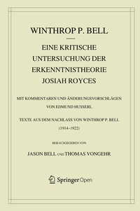 Einleitung.- Hinweise für die Leser.- Eine kritische Untersuchung der Erkenntnistheorie Josiah Royces (1914/22).- Kapitel I. Einleitung.- Kapitel II. Die "erste Ansicht des Idealismus" und die Voraussetzungen der Royce'schen Erkenntnistheorie.- §1. Erkenntnistheoretischer und metaphysischer Idealismus.- §2. Die Idee eines absoluten Bewusstseins; nur das Seelische ist direkt verständlich.- §3. Aufmerksamkeit und recognition als Erkenntnisfunktionen 15.- §4. Wie Vorstellungen und Urteile von endlichen, bewussten Wesen irren können.- §5. Der Glaube an die Realität der Außenwelt beruht nicht auf einem Kausalschluss.- §6. Das Studium der Erkenntnis. Die Scheidung zwischen "internal und "external meaning".- §7. Ist Royces Idealismus ein Psychologismus?.- §8. Das Reale muss in meinem Bewusstsein immanent sein können.- §9. Zusammenfassung.- Kapitel III. Kritik von Royces Voraussetzungen. Der eigentliche Boden einer Erkenntnistheorie. Die reine Wesenslehre des Bewusstseins.- §1. Sind seelische Inhalte und Zustände als Ideen unsere einzigen unmittelbaren Erkenntnisobjekte?.- §2. Inwieweit das Innen-Außen-Schema auf das erkennende Bewusstsein anwendbar ist.- §3. Die gegenständliche Beziehung der Erkenntnis und die Gültigkeit ihrer Ansprüche. PositiveWissenschaft und Erkenntnistheorie.- §4. Circulus vitiosus und regressus in infinitum.- §5. Der wahrgenommene und der vermeinte Gegenstand. Essenz und Existenz.- §6. Wesenserkenntnis und Tatsachenerkenntnis.- §7. Das Verhältnis vonWesen und Begriff.- §8. Vorstellungen und Wahrnehmungen sind keine Bilder oder Stellvertreter ihres Gegenstandes.- §9. Das "cogito, ergo sum" als unbezweifelbarer Bestand.- §10. Die Frage nach der Evidenz.- §11. Die Forderung nach adäquaterWesenserkenntnis.- §12. Die Untersuchung der Erkenntnis gehört nicht in die psychologische Sphäre. Die Psychologie ist Seelenlehre und keine Erkenntnislehre.- §13. Royces Verfehlungen hinsichtlich des Wesens der Erkenntnis, seine psychologistische Befangenheit.- §14.Royces Missdeutung der Eigentümlichkeit der intentionalen Akte.- §15. Nur durch Erscheinungen können wir die Realeigenschaften erkennen.- §16. Die Phänomenologie als Wesenserforschung des Bewusstseins und die Frage nach der Gültigkeit der transzendenten Leistung intentionaler Akte.- Literaturverzeichnis.- Beilage I. Edmund Husserl, Kommentare und Änderungsvorschläge zur Dissertation vonW.P. Bell.- Hinweise für die Leser.- Ad Kapitel I.- Ad Kapitel II.- Ad Kapitel III.- Beilage II. Auszug aus der Dissertation vonW.P. Bell (1922).- Einleitung.- II. Die "erste Ansicht des Idealismus" und dieVoraussetzungen der Royce'schen Erkenntnistheorie.- III. Kritik von Royces Voraussetzungen. Der eigentliche Boden einer Erkenntnistheorie. Die reineWesenslehre des Bewusstseins.- Namenregister.