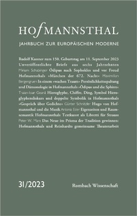 Das »Hofmannsthal - Jahrbuch zur europäischen Moderne« erscheint seit 1993 und gilt als das wichtigste Organ der Hofmannsthal-Forschung. Es stellt die Werke Hugo von Hofmannsthals (1874-1929) in den ästhetischen und sozialhistorischen Kontext der europäischen Kultur der Moderne und bietet neben der Veröffentlichung bisher unpublizierter Briefwechsel Beiträge namhafter Wissenschaftler:innen zur Literatur, bildenden Kunst, Philosophie, Psychologie, Politik, zu Tanz und Theater der Jahrhundertwende.Inhalt des diesjährigen Bandes:Rudolf Kassner zum 150. Geburtstag am 11. September 2023Unveröffentlichte Briefe aus sechs JahrzehntenMitgeteilt und kommentiert von Klaus E. BohnenkampMiriam Schabinger: Ödipus nach Sophokles und vor FreudHofmannsthals »Märchen der 672. Nacht«Maximilian Bergengruen: In einem »wachen Traum«Persönlichkeitsspaltung und Dämonologie in Hofmannsthals »Ödipus und die Sphinx«Traian-Ioan Gean¿: Hieroglyphe, Chiffre, Ding, SymbolHieroglyphendiskurs und doppelte Symbolik in Hofmannsthals »Gespräch über Gedichte«Günter Schnitzler: Hugo von Hofmannsthal und die MusikAntonia Eder: Eigenzeiten und Raumsemantik Hofmannsthals Textkunst als Libretti für StraussPeter W. Marx: Das Neue im Prisma der Tradition gewinnen: Hofmannsthals und Reinhardts gemeinsame Theaterarbeit