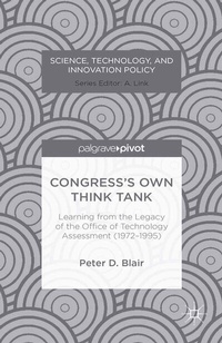 "For almost a quarter of a century the Office of Technology Assessment (OTA) was one of the most respected, productive, and cost-efficient agencies in history, producing comprehensive reports for the House and Senate on issues relating to climate change, health care policy, agricultural production, telecommunications, space policy, electronic surveillance, national defense, and may more. In a senseless fit of government reduction the agency was closed in 1995, and the country lost a valuable resource. A new mechanism for providing independent, non-partisan, science and technology advice for the Congress is essential for our country. No one is better able than Peter Blair to tell the story of why OTA worked so well for legislators and the general public and what can be done now to revive the service OTA provided. With an insider's view and with science policy expertise he gives a clear, well-documented account that will be invaluable to anyone thinking about how best to legislate in a world teeming with overlapping and incompletely understood technologies." - Rush D. Holt, Jr., U.S. Representative for New Jersey's 12th congressional district
