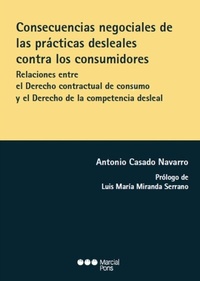 Esta obra aborda las conexiones apreciables entre el Derecho de contratos y el Derecho represor de la competencia desleal con el fin de analizar las posibles soluciones a los problemas derivados de la contratación de consumo afectada por prácticas comerciales desleales. Tras una breve introducción donde se da debida cuenta del propósito de la investigación y de su justificación, el trabajo se inicia con la exposición de la tradicional situación de desconexión entre las disciplinas contractual y concurrencial. Posteriormente, se analizan las conexiones intersectoriales en los planos axiológico y funcional, así como los distintos materiales normativos de los que se infieren esas aún incipientes conexiones. Sobre la base de lo anterior, se examinan las medidas correctoras individuales que el Derecho de la competencia desleal pone a disposición de los consumidores para hacer frente a las prácticas desleales, las propuestas de lege ferenda proporcionadas por la doctrina patria para remover los efectos contractuales de dichas prácticas, así como las diversas soluciones ofrecidas por distintos Estados miembros de la Unión Europea. A continuación, se analizan los nuevos materiales normativos provenientes de Bruselas que ahondan en el proceso de permeabilización entre el Derecho de contratos y el Derecho de la competencia desleal, así como las iniciativas legislativas tendentes a su incorporación a nuestro ordenamiento. El trabajo concluye con la propuesta de algunas directrices para lograr lo que entendemos que sería una correcta incorporación de los mandatos comunitarios e interpretar correctamente la normativa ya existente sobre la materia.