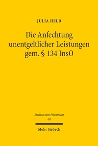 Bild: Die Anfechtung unentgeltlicher Leistungen gem. § 134 InsO - Mohr Siebeck