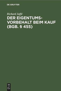 Bild: Der Eigentumsvorbehalt beim Kauf (BGB. § 455) - De Gruyter