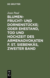 Frontmatter -- Inhalt des zweiten Bandes -- Drittes Bändchen -- Neuntes Kapitel. Kartoffelkriege mit Weibern - und mit Männern - der Dezemberspaziergang - Zunder der Eifersucht - Erbfolgekrieg um den grillierten Kattun - Zerfallen mit Stiefel - die schmerzhafte Abendmusik -- Zehntes Kapitel. Der einsame Neujahrtag - der gelehrte Schalaster - hölzernes Bein der Appellazion - Briefpvst in der Stube - der eilste. Februar und Geburttag 1786 -- Eilftes Kapitel. Leibgebers Schreiben über den Ruhm,- Firniians Abendblatt -- Zwölftes Kapitel. Auszug aus Aegypten - der Glanz des Reifens - die Unbekannte - Bayreuth - Taufhandlungen im Sturm - Natalie und Eremitage- das wichtigste Gespräch in diesem Werk - der Abend der Freundschaft -- Dreizehntes Kapitel. Die Uhr aus Menschen - Korbflechterin - der Venner -- Vierzehntes Kapitel. Verabschiedung eines Liebhabers - Fantaisie - das Kind mit dem Strauße - das Eden der Nacht und der Engel am Thor des Paradieses -- Viertes Bändchen -- Intelligenzblatt der Blumenstücke -- Fünfzehntes Kapitel. Rosa von Meyern - Nachklänge und Nachwehen der schönsten Nacht - Briefe Nataliens und Firmians - Tischreden Leibgebers -- Sechzehntes Kapitel. Abreise - Reisefreu den - Ankunft -- Siebenzehntes Kapitel. Der Schmetterling Rosa als Minierraupe - Dornenkronen und Distelköpfe der Eifersucht -- Achtzehntes Kapitel. Nachsommer der Ehe - Vorbereitungen zum Sterben -- Neunzehntes Kapitel. Das Gespenst - Heimziehen der Gewitter im August oder letzter Zank - Kleider der Kinder Israel -- Zwanzigstes Kapitel. Der Schlagfluß - der Obersanitätrath - der Landschreiber - das Testament- der Rittersprung - der Frühprediger Neuel - der zweite Schlagfluß -- Ein und zwanzigstes Kapitel. D. Oelhafen und das medizinische Chauffieren - Trauer-Administrazion - der reitende Todtenkops - Friedrich II. und Standrede -- Zwei und zwanzigstes Kapitel. Durchreise durch Fantaisie - Wiederfund auf dem Bindlocher Berg - Berneck, Menschen-Verdoppeln - Gefrees, Kleiderwechsel - Münchberg, Pfeifstück - Hof, der fröhliche Stein und Doppel-Abschied sammt Töpen -- Drei und zwanzigstes Kapitel. Tage in Vaduz - Nataliens Brief - ein Neujahrwunsch - Wildniß des Schicksals und des Herzens -- Vier und zwanzigstes Kapitel. Nachrichten aus Kuhschnappel - Antiklimar der Mädchen - Eröffnung der 7 Siegel -- Fünf und zwanzigstes und letztes Kapitel. Die Reise - der Gottesacker - das Gespenst - das Ende des Elendes und des Buchs