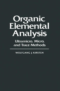 PrefaceAcknowledgmentsIntroductionChapter 1 Reagent Solutions, Standard Solutions, and Standard SubstancesChapter 2 TransfersChapter 3 Homogenization Of SpecimensChapter 4 Drying of Specimens and SamplesChapter 5 Weighing and Encapsulation of Samples Weighing in Crimped Capsules Hygroscopic Samples Volatile and Hygroscopic Liquids Volatile Solids, Smeary and Oily Materials,and Wet Solids PrecautionsChapter 6 SpectrophotometryChapter 7 Multielement DeterminationsChapter 8 The Carle Erba Automatic Gas Chromatographic Elemental Analyzer The Function of the CHN Channel The Function of the Oxygen Channel Processing of the Data Some Common Operations General RemarksChapter 9 Automatic Simultaneous Determination of Carbon, Hydrogen, and Nitrogen Apparatus Reagents Adjustment of Apparatus Procedure ApplicabilityChapter 10 Automatic Simultaneous Determination of Carbon, Hydrogen, Nitrogen, and Sulfur Apparatus Reagents Adjustment of Apparatus Procedure ApplicabilityChapter 11 Automatic Simultaneous Determination of Carbon, Hydrogen, Nitrogen, and Sulfur or Trace Sulfur Apparatus Reagents Adjustment of Apparatus ProcedureChapter 12 Automatic Micro and Trace Determination of Nitrogen Apparatus Modifications Reagents Adjustment of Apparatus Encapsulation of Samples and Loading of Drums Running the Analyses ApplicabilityChapter 13 Additional Remarks on CHN, CHNS, CHNS Trace S, And N Determination Methods Reactor Tubes Retention of Nitrogen Inlet Delay Time Temperature of Copper FillingChapter 14 Automatic Determination of Oxygen Apparatus Reagents Adjustment of Apparatus Procedure Applicability Discussion of The Oxygen Determination MethodChapter 15 Ultramicre Determination of Sulfur Reagents Additional Reagents for Extraction Method Additional Reagent for Bismuth-, Iodine-, Mercury-, Or Selenium-Containing Samples Assembly and Adjustment of Apparatus Procedure DiscussionChapter 16 Ultramicro Determination of Fluorine Reagent Assembly and Adjustment of Apparatus ProceduresChapter 17 Simultaneous Determination of Sulfur and Fluorine Apparatus ProcedureChapter 18 Trace Determination of Sulfur or Fluorine Apparatus Additional Reagents for Fluorine (Seldom Needed) Adjustment of Apparatus Combustion MethodsChapter 19 Ultramicro Determination Of Chlorine, Bromine, and Iodine Hot-Flask Combustion Titration PrecautionsChapter 20 Trace Determination of Chlorine, Bromine, and Iodine Apparatus Reagents ProcedureChapter 21 Ultramicro and Trace Determination of Phosphorus and Phosphate Reagents Procedure: Ultramicro and Micro Procedure: Trace Spectrophotometry InterferencesChapter 22 Determination of AshesReferencesIndex