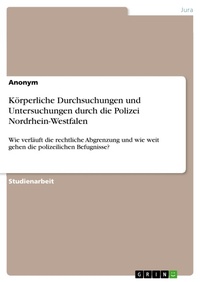 Studienarbeit aus dem Jahr 2020 im Fachbereich Jura - Öffentliches Recht / Staatsrecht / Grundrechte, Note: 1,7, , Veranstaltung: Hauptseminar Eingriffsrecht (Modul 2.4), Sprache: Deutsch, Abstract: Die in der hier vorzulegenden Arbeit zu behandelnden körperlichen Durchsuchungen und Untersuchungen durch die Polizei gehen regelmäßig, geradezu zwangsläufig, mit durchaus gravierenden Eingriffen in verschiedene Grundrechte der Betroffenen einher. Diese Arbeit widmet sich daher der an Aktualität nie einbüßenden Problematik der Abgrenzung beider Begriffe, unter besonderer Beachtung der Vorgaben der Gesetzgebung des Landes Nordrhein-Westfalen.