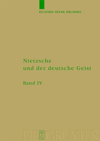 Der neue Band enthält Ergänzungen und Berichtigungen zu den ersten drei Bänden sowie ein Gesamtnamenverzeichnis. Damit ist das vierbändige Schrifttumsverzeichnis zur Wirkung Nietzsches auf Kunst und Kultur im deutschsprachigen Raum abgeschlossen.