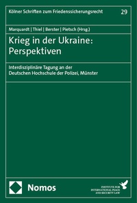 Die interdisziplinäre Tagung "Krieg in der Ukraine: Perspektiven" fand vom 30. August-1. September 2023 in Münster statt. Veranstalter war die Deutsche Hochschule der Polizei (DHPol) in Münster. Thematisiert wurden die Hintergründe und Herausforderungen des fortdauernden russischen Angriffskrieges gegen die Ukraine, Möglichkeiten seiner Beendigung sowie Rahmenbedingungen einer stabilen und wehrhaften internationalen Friedensordnung aus völker(straf)rechtlicher, außenpolitischer und polizeipraktischer Perspektive. Der Tagungsband enthält ausgewählte Tagungsvorträge. Weitere Beiträge blicken zurück auf die erste Kriegsverbrechen-Tagung der DHPol in Münster 2022 und wagen einen Ausblick auf mögliche weitere Entwicklungen betreffend den Krieg in der Ukraine.