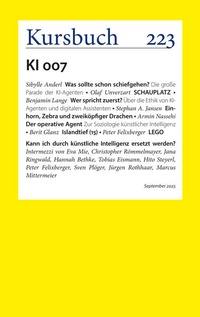 KI-Agenten wie ChatGPT oder Gemini sind in aller Munde. Viele Debatten springen allerdings zu kurz und landen mitten in der Petersilie. Das Kursbuch hat deshalb Autoren und Autorinnen eingeladen, tiefer zu blicken. Was kann sie nun, die KI - und was können KI-Agenten? Durch das Heft ziehen sich die Fragen nach der Zurechenbarkeit von agentischer KI, nach der Verantwortung und nach der Reflexivität dieser Technik. Sibylle Anderl lässt die große Parade der KI-Agenten aufmarschieren. Benjamin Lange kümmert sich um Ethikfragen und dahinter lauernden Widersprüchen. Hinzu kommen zehn Intermezzi von unterschiedlichen Autorinnen und Autoren (von ARD-Wettermann Sven Plöger bis zur Cyberstaatsanwältin Jana Ringwald), denen die Frage gestellt wurde, ob sie durch die KI ersetzbar seien. Heraus kamen differenzierte, kompetente Antworten jenseits einer Marketingsprache, die so tut, als sei KI und als seien ihre Anwendungen leistungsfähigere Versionen unserer selbst. Die Fotostrecke von Olaf Unverzart hat es ebenfalls in sich. Er hat ChatGPT/Pro Bilder nach knapper Beschreibung des Bildinhalts generieren lassen und eigenen Fotografien, denen er die Beschreibung entnommen hat, gegenübergestellt. Berit Glanz' »Islandtief« erzählt diesmal von einem abgestürzten Flugzeug, dessen Wrack durch ein neues ersetzt wurde, nachdem das alte Wrack nicht mehr tauglich war - hier geht's nicht um KI, aber auch um Sein und Schein, um Bedeutung und ihre Generierung. Peter Felixberger bespricht schließlich in LEGO Thorsten Nagelschmidts neuen Roman Nur für Mitglieder.