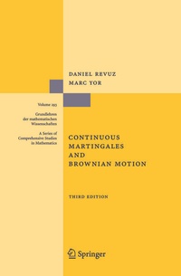 This is a magnificent book! Its purpose is to describe in considerable detail a variety of techniques used by probabilists in the investigation of problems concerning Brownian motion. The great strength of Revuz and Yor is the enormous variety of calculations carried out both in the main text and also (by implication) in the exercises. ... This is THE book for a capable graduate student starting out on research in probability: the effect of working through it is as if the authors are sitting beside one, enthusiastically explaining the theory, presenting further developments as exercises, and throwing out challenging remarks about areas awaiting further research..." Bull.L.M.S. 24, 4 (1992)