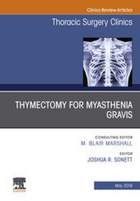 This issue of Thoracic Surgery Clinics of North America, guest edited by Dr. Joshua Sonett, is devoted to Thymectomy for Myasthenia Gravis. Dr. Sonett has assembled expert authors to review the following topics: Role of Thymus in the Immune System; A Neurologist's Perspective to Understanding Myasthenia Gravis: Clinical Perspectives of Etiology, Diagnosis and Preoperative Treatment; A Neurologist's Perspective on Thymectomy for Myasthenia Gravis: Current Perspective and Future Trials and Medications; Surgical Approaches to Myasthenia Gravis: Perspective of Anatomy and Radicality in Surgery; Surgical Techniques for Myasthenia Gravis: VATS; Surgical Techniques for Myasthenia Gravis: RATS; Surgical Decision Making: Thymoma and Myasthenia Gravis; Immune Syndromes and the Thymus: Is There a Role of Thymectomy?; Surgical Techniques for Myasthenia Gravis: Transcervical; Surgical Technique for Myasthenia Gravis: Subxyphoid Approach; History of Thymectomy for Myasthenia Gravis; and more!