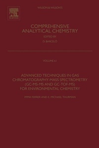 Part I: Advances in GC-MS and GC-MS-MS. Environmental Applications.Ch. 1. Gas Chromatography-Mass Spectrometry Techniques for Multiresidue Pesticide Analysis in Agricultural Commodities, Jon W. Wong, Douglas G. Hayward and Kai ZhangCh. 2. Microextraction Techniques coupled to Advanced GC-MS Techniques for Analysis of Environmental Samples, Dimitra LambropoulouCh. 3. Determination of Pesticide Residues in Environmental and Food Samples Using Gas Chromatography-Triple Quadrupole Mass Spectrometry, Kai Zhang et al.Ch. 4. Environmental Odour Pollution: a complex GC-MS, Olfactometry and Diffusion Modeling Approach to define Air Quality, Giancarlo Bianchi, Marinella Palmiotto and Enrico DavoliCh. 5. Injection Port Derivatization for GC/MS-MS Analysis of Hormones in Water, E. Michael Thurman, Jeff H. Writer and Imma FerrerCh. 6. High-Throughput Analysis of PPCPs, PCDD/Fs and PCBs in Biological Matrices using GC-MS-MS, Sascha Usenko, Bikram Subedi, Lissette Aguilar and Eleanor RobinsonCh. 7: GC-MS Applied to the Monitoring of Pesticides in Milk and Blackberries, and PAHs in Processed Meats of Colombia, Gustavo Antonio Peñuela Mesa et al.Ch. 8. Applications and Strategies Based on Gas Chromatography-Low Resolution Mass Spectrometry (GC-LRMS) for the Determination of Residues and Organic Contaminants in Environmental Samples, Juan A. Padilla-Sánchez, Patricia Plaza-Bolaños and Antonia Garrido-FrenichCh. 9. Determination of Pyrethroid Insecticides in Environmental Samples by GC-MS and GC-MS-MS, Cayo Corcellas, Ethel Eljarrat and Damià BarcelóCh. 10. GC-MS-MS for the Analysis of Phytoestrogens in the Environment, Imma Ferrer and E. Michael ThurmanPart II: Advances in High Resolution and Accurate Mass GC-MS. Environmental Applications.Ch. 11. Principles and Applications of Gas Chromatography Quadrupole Time-of-Flight Mass Spectrometry, Jennifer N. GushueCh. 12. Gas chromatography-Time-of-Flight Mass Spectrometry in Food and Environmental Analysis, Tomas CajkaCh. 13. Ultra-high Mass Resolution Miniaturized Time-of-Flight Mass Spectrometer "infiTOF for Rapid Analysis of Polychlorinated Biphenyls (PCBs), Shinichi Miki et al.Ch. 14. Environmental Applications of Soft Ionization with GC-TOF-MS and GC-QTOF-MS, Viorica Lopez-Avila, Patrick J. Roach and Randall UrdahlCh. 15: Compound-Specific Stable Isotope Analysis of Natural and Produced Hydrocarbon Gases Surrounding Oil and Gas Operations, Owen A. Sherwood, Patrick D. Travers and Michael P. DolanCh. 16. Analysis of Halogenated Flame Retardants by Gas Chromatography coupled to LRMS, HRMS, MS-MS and ToF-MS, Enrique Barón, Ethel Eljarrat, Damià BarcelóCh. 17. Industrial Applications of High Resolution GC-MS, Jeffrey R. Gilbert, et al.Ch. 18. Current Applications of GC-(Q)TOF and GC-HRMS for the Determination of Persistent Organic Pollutants in Water and Sediment Samples, Patricia Plaza-Bolaños, Noelia M. Valera-Tarifa and Antonia Garrido-FrenichCh. 19. A GC/MS-MS vs. GC/HRMS Dioxin Analysis Comparison. Some Critical Considerations for Low Level Environmental Samples, Marinella Palmiotto, Andrea Colombo and Enrico DavoliCh. 20. The Future of GC/Q-TOF in Environmental Analysis, Anthony Macherone