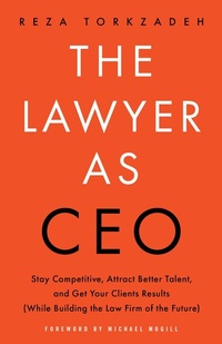 Research. Trial strategy. Debate. As a lawyer, these are the complex areas in which you thrive. But when it comes to building a sustainable business, your education-and experience-can't guarantee your success. Today's legal landscape is changing. Behind the doors of your competition are large corporations and powerful executives who understand that clients are consumers looking for exceptional service and fast results. Will you be able to deliver in this new environment? How will you remain competitive and ensure growth? Can you become the lawyer and CEO you need to be? In The Lawyer As CEO, Reza Torkzadeh explores these changes and shows how to adapt your mindset, develop your employees, and build a customer-focused business. Reza shares how his firm became a market leader by positioning client as consumer, firm as Fortune 500 company, and lawyer as CEO. You'll learn not only how to weather each storm but how to leverage change so it transforms into opportunity. The Lawyer As CEO is the playbook you need to compete in today's market and your chance to increase accountability, cultivate company culture, and invest fully in both your clients' experience and the people you've hired.