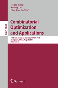 This book constitutes the refereed proceedings of the 5th International Conference on Combinatorial Optimization and Applications, COCOA 2011, held in Zhangjiajie, China, in August 2011. The 43 revised full papers were carefully reviewed and selected from 65 submissions. The papers cover a broad range of topics in combinatorial optimization and applications focussing on experimental and applied research of general algorithmic interest and research motivated by real-world problems.