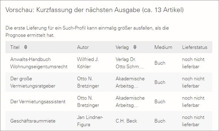 - Bei dem Filtern nach Lieferbarkeit ist es z.B. möglich, nur die lieferbaren Titel auszuwählen. Damit zeigen wir Ihnen keine Produkte, die erst in Wochen oder Monaten erscheinen werden.