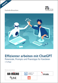 Für Kanzleien, die ChatGPT effektiv nutzen möchten, bietet die Neuauflage der Fachinfo-Broschüre "Effizienter arbeiten mit ChatGPT" einen praxisorientierten Leitfaden. Zusätzlich zu überarbeiteten Beiträgen aus der 1. Auflage erhält die 2. Auflage der Broschüre eine Übersicht mit neuen Funktionen von ChatGPT, Tipps für den Einsatz von Microsoft Copilot im Kanzleialltag sowie eine Linkliste mit hilfreichen Tool- und Plugin-Tipps für ChatGPT.