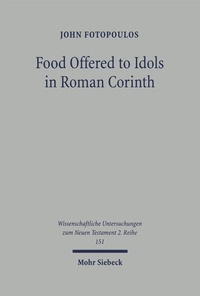 John Fotopoulos untersucht, welche Anweisungen Paulus in 1 Kor 8,1-11,1 bezüglich der Opferspeisen gibt. Dabei geht er auf die möglichen Kontexte ein, in denen Christen in Korinth mit heiligen Speisen in Berührung kamen, und macht deutlich, daß es Paulus in 1 Kor 8,1 - 10,22 hauptsächlich um die rituellen Mahlzeiten in heidnischen Tempeln geht.
