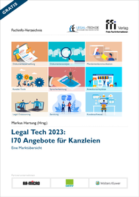 Um im großen Angebot genau die Legal Tech-Tools zur Digitalisierung der Arbeit zu finden, die zu den eigenen Bedürfnissen und Voraussetzungen passen, bietet das aktuelle Legal Tech-Verzeichnis "Legal Tech 2023: 170 Angebote für Kanzleien" von Herausgeber Markus Hartung einen kompakten Überblick über die deutsche Legal Tech-Landschaft. In elf Rubriken werden jeweils praxisnahe Legal Tech-Angebote speziell für Anwältinnen und Anwälte vorgestellt. Das Legal Tech-Verzeichnis 2023 ist damit eine Unterstützung für Kanzleien, die ihre Arbeitsweise optimieren und ihre Effizienz steigern wollen.
