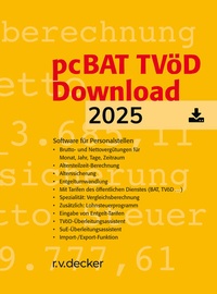 pcBAT TVöD ist ein schnelles Informationssystem zur Ermittlung von Brutto- und Nettovergütungen im öffentlichen Dienst von Bund und Kommunen.