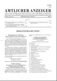 Nach hamburgischem Landesrecht werden Veröffentlichungen durch Abdruck im Hamburgischen Gesetz- und Verordnungsblatt, dem Amtlichen Anzeiger, vorgenommen. Seit dem Jahrgang 2010 gibt es auch eine Online-Ausgabe.