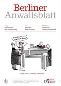 Im Berliner Anwaltsblatt lesen Sie neueste Beiträge aus den Arbeitskreisen des Berliner Anwaltvereins, erfahren Sie Neuigkeiten aus den Berufsorganisationen und der Berliner Justiz. Neben aktuellen Entscheidungen finden Sie auch Themen des Kanzleimanagements oder zum Berufs- und Gebührenrecht.
