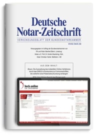 Herausgegeben wird die Deutsche Notar-Zeitschrift im Auftrag der Bundesnotarkammer. Der Verlag C.H.BECK bürgt für Qualität im Recht und sichere Informationen für alle Fälle.