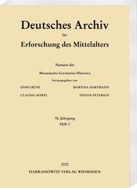 Das »Deutsche Archiv für Erforschung des Mittelalters« ist die Zeitschrift der 1819 gegründeten Monumenta Germaniae Historica. Die traditionsreiche Fachzeitschrift veröffentlicht Untersuchungen und Darstellungen zur Geschichte des Mittelalters, wobei quellenkritische und editorische Fragestellungen besondere Berücksichtigung finden. Das »Deutsche Archiv« verdankt seinen Ruf nicht zuletzt seinem umfangreichen Rezensionsteil, der neben Monographien auch rund 270 einschlägige Zeitschriften systematisch erschließt.