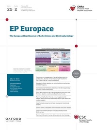 EP - Europace - European Journal of Pacing, Arrhythmias and Cardiac Electrophysiology of the European Heart Rhythm Association of the European Society of Cardiology. The journal aims to provide an avenue of communication of top quality European and international original scientific work and reviews in the fields of Arrhythmias, Pacing and Cellular Electrophysiology. The Journal offers the reader a collection of contemporary original peer-reviewed papers, invited papers and editorial comments together with book reviews and correspondence.