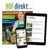HOFdirekt ist das Basismedium für die sich ständig weiterentwickelnde Direktvermarktung. Sechsmal jährlich erscheint HOFdirekt und trägt dazu bei, dass unsere Leser Produkte von höchster Qualität anbieten können. Auflage und Akzeptanz des redaktionellen Konzepts machen HOFdirekt zum bevorzugtem Werbeträger.