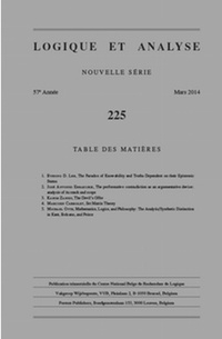 Logique et Analyse is an international, peer-reviewed journal that publishes research in logic, philosophy of logic and/or mathematics, argumentation-theory, and analytical philosophy, broadly conceived.