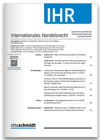 Ob Wirtschaftskanzlei, Syndikusanwalt oder Rechtsabteilung international agierender Handelsunternehmen, Richter, Industrieverbände und -kammern, Schiedsrichter, Wissenschaft und Lehre: Profitieren auch Sie von den praxisnahen Aufsätzen, aktuellen Entscheidungen und Entscheidungsanmerkungen, die Ihnen die IHR Heft für Heft zum internationalen Handelsrecht bietet.