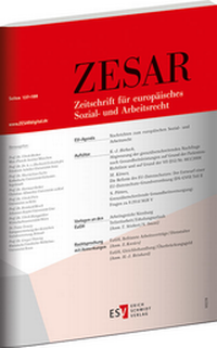 In der Zeitschrift für europäisches Sozial- und Arbeitsrecht, kurz ZESAR, finden Sie ohne aufwändige Recherche zentral alle einschlägigen Informationen. Sie bietet Ihnen detaillierte und zeitnahe Antworten. Monat für Monat erhalten Sie durch ZESAR u.a.