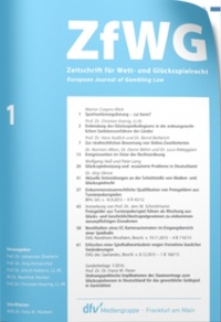 Die ZfWG beschäftigt sich mit allen rechtlichen und wirtschaftlichen Fragen im Zusammenhang mit dem Glücksspiel, den Wetten und den verwandten Themen im Grenzbereich zu Geschicklichkeitsspielen und sonstigen Spielvarianten. Kompetente Autoren berichten regelmäßig über die juristischen, aber auch die medizinischen und wirtschaftlichen Aspekte und Entwicklungen.